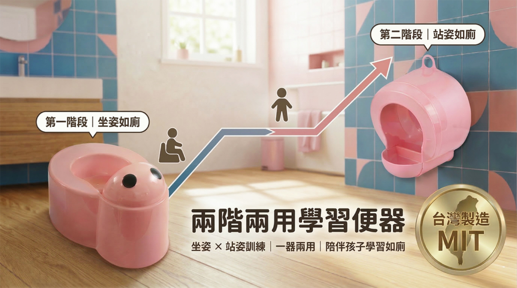 - 第一階段:訓練坐姿如廁,小女孩與小男孩皆可使用。