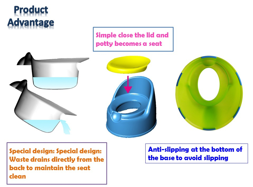 - 便盆可以取出清潔,而且有排泄物倒出口設計,不汙染座位。