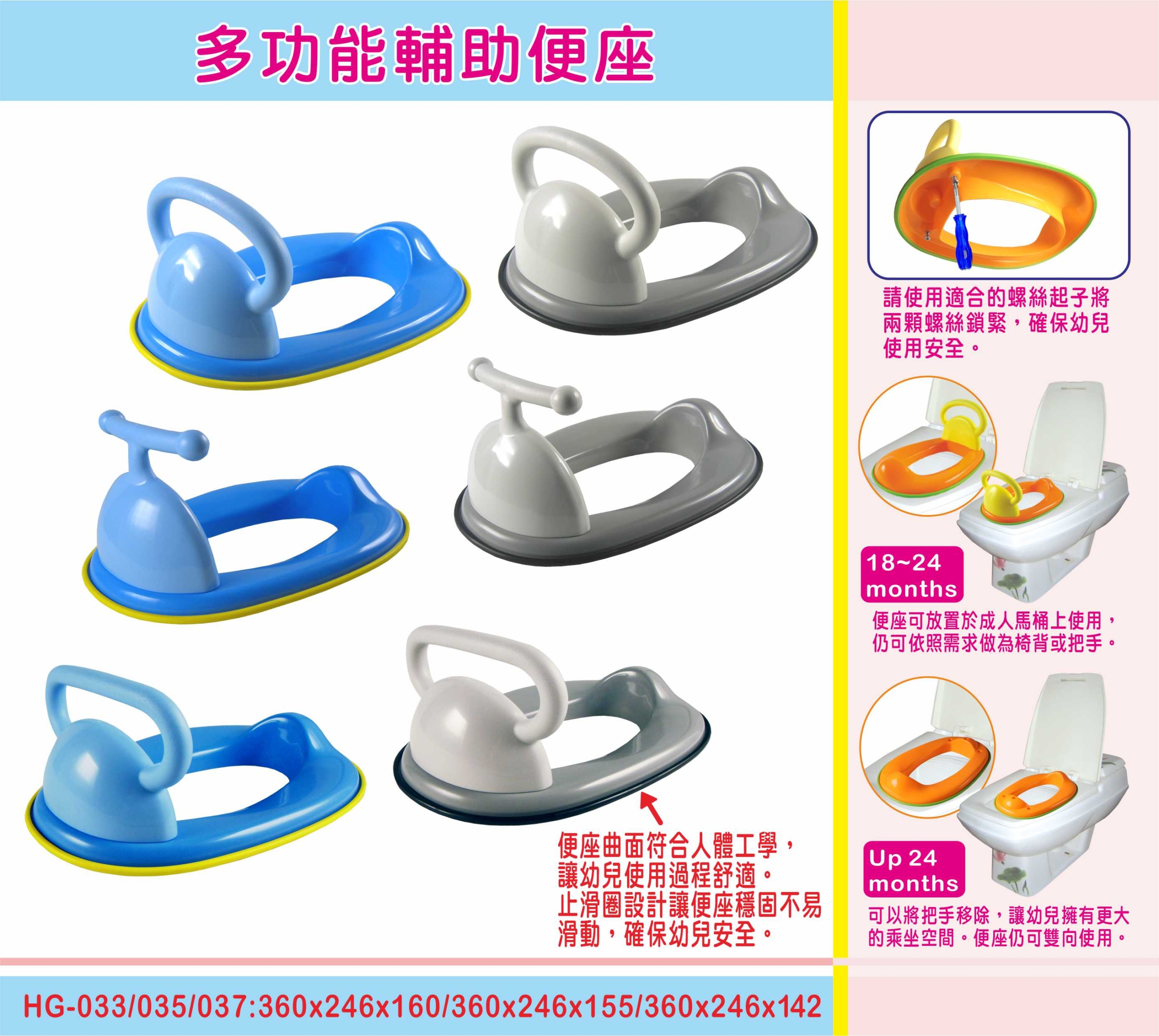 - 造型把手,幼兒如廁時可以抓握,增加安全感。