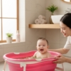 - 兩側有止滑護套讓家長能將手腕靠著,舒適的與寶寶共享沐浴時光。