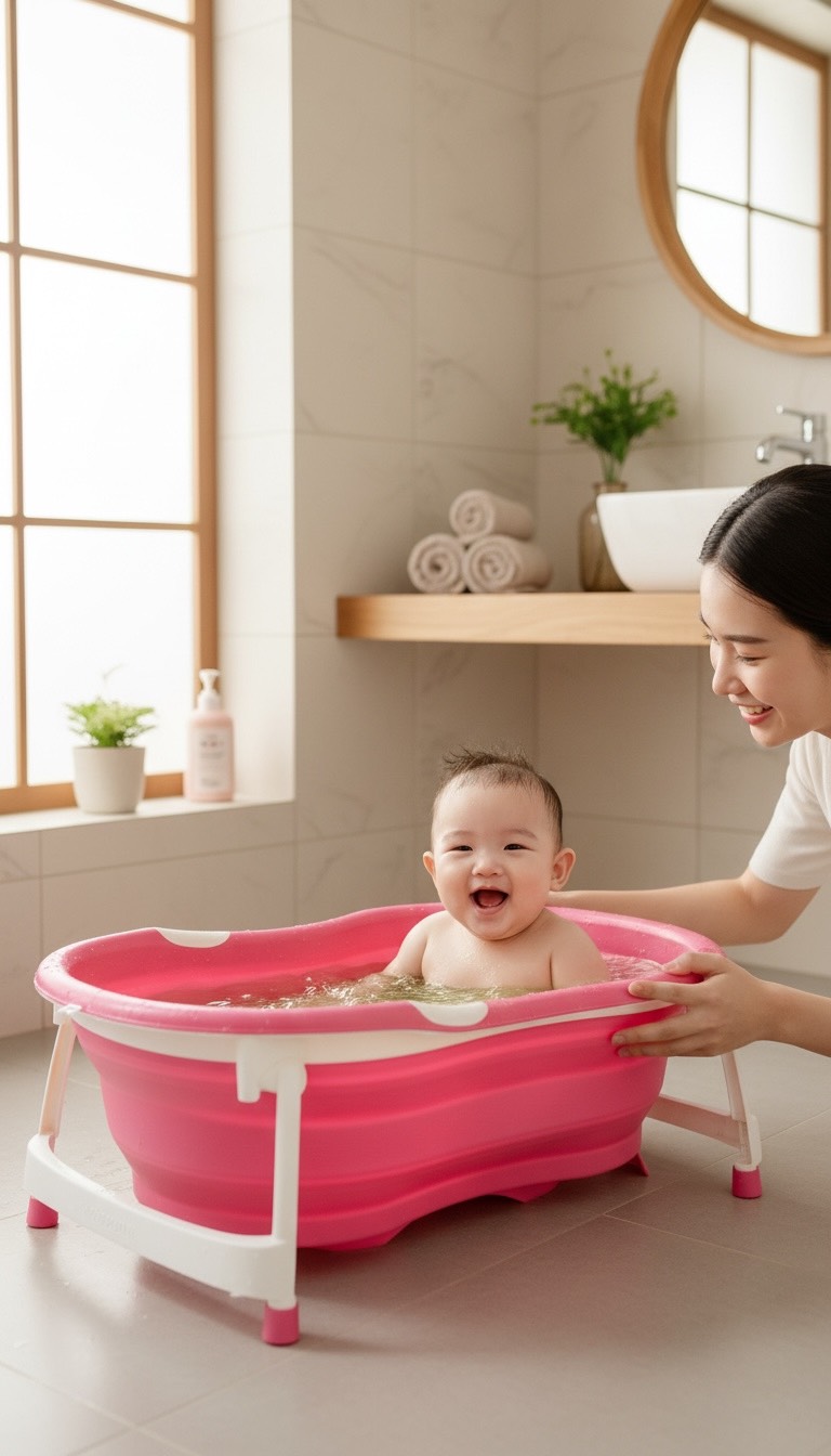 - 浴盆本體是可伸縮材質,不用時可以節省收納空間。