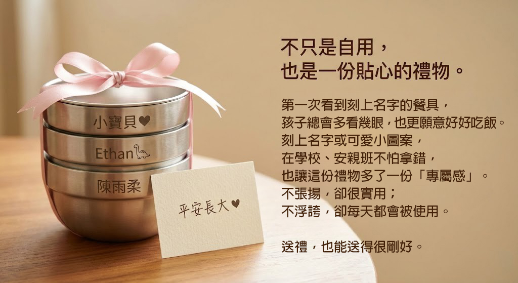 316不銹鋼雙層隔熱兒童碗11CM 附蓋+小湯匙(可客制刻字) 數量